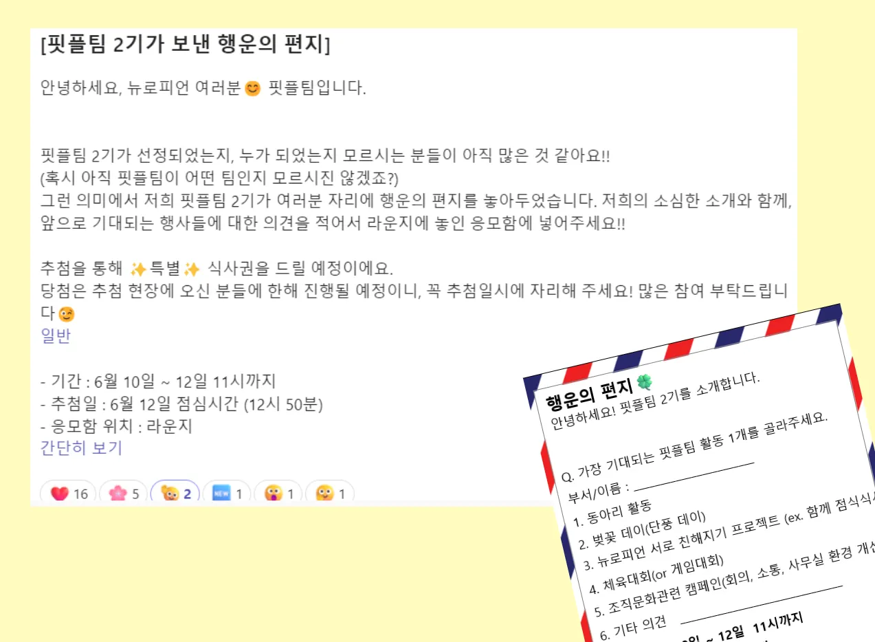 또 뉴로피언이 어떤 활동을 기대하는 지 알아볼 겸 행운의 편지를 보내봤습니다.